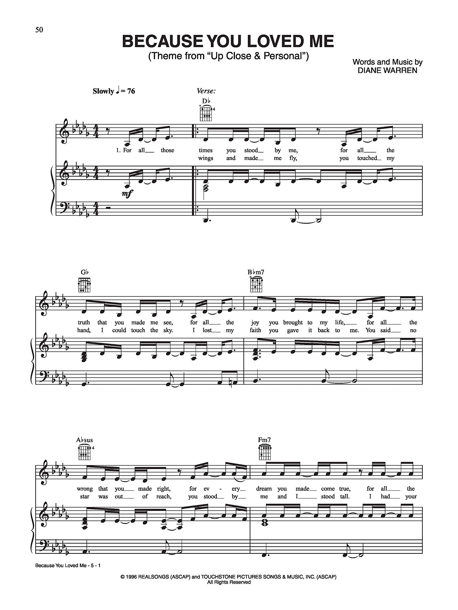 Because You Loved Me Sheet Music By Celine Dion For Piano Keyboard And Voice Noteflight Marketplace
