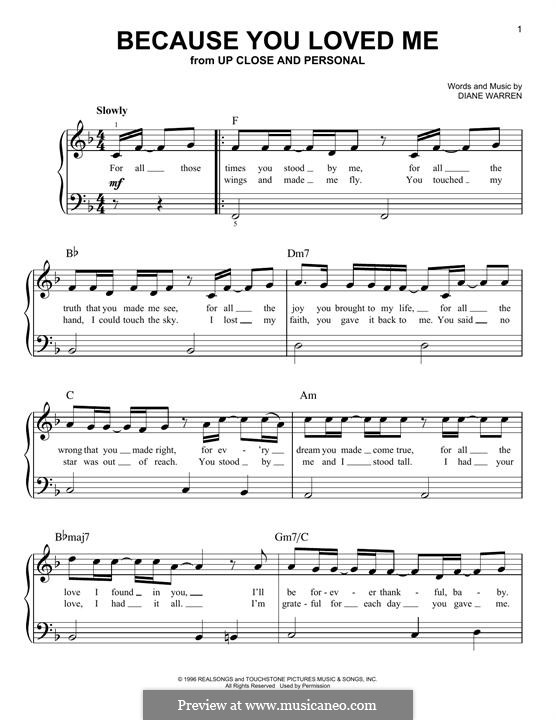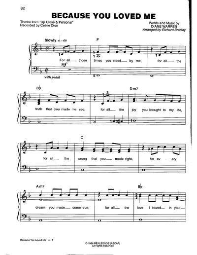 Because You Loved Me Theme From Up Close Personal Piano Vocal Chords Sheet Celine Dion