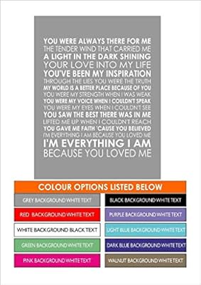 Celine Dion Because You Loved Me Word Art Print Love Engagement Marriage Lyrics Because I Love You My Love Song Quotes