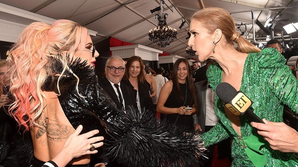 Celine Dion Is Gorgeous In Green Meets Lady Gaga At Grammys 2017 Photo 3858271 2017 Grammys Celine Dion Grammys Lady Gaga Pictures Just Jared