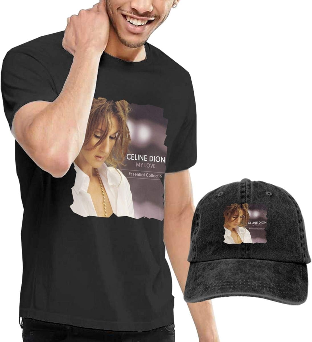 Gabrielr Men S Celine Dion My Love T Shirts Washed Denim Baseball Dad Cap Black Amazon Com