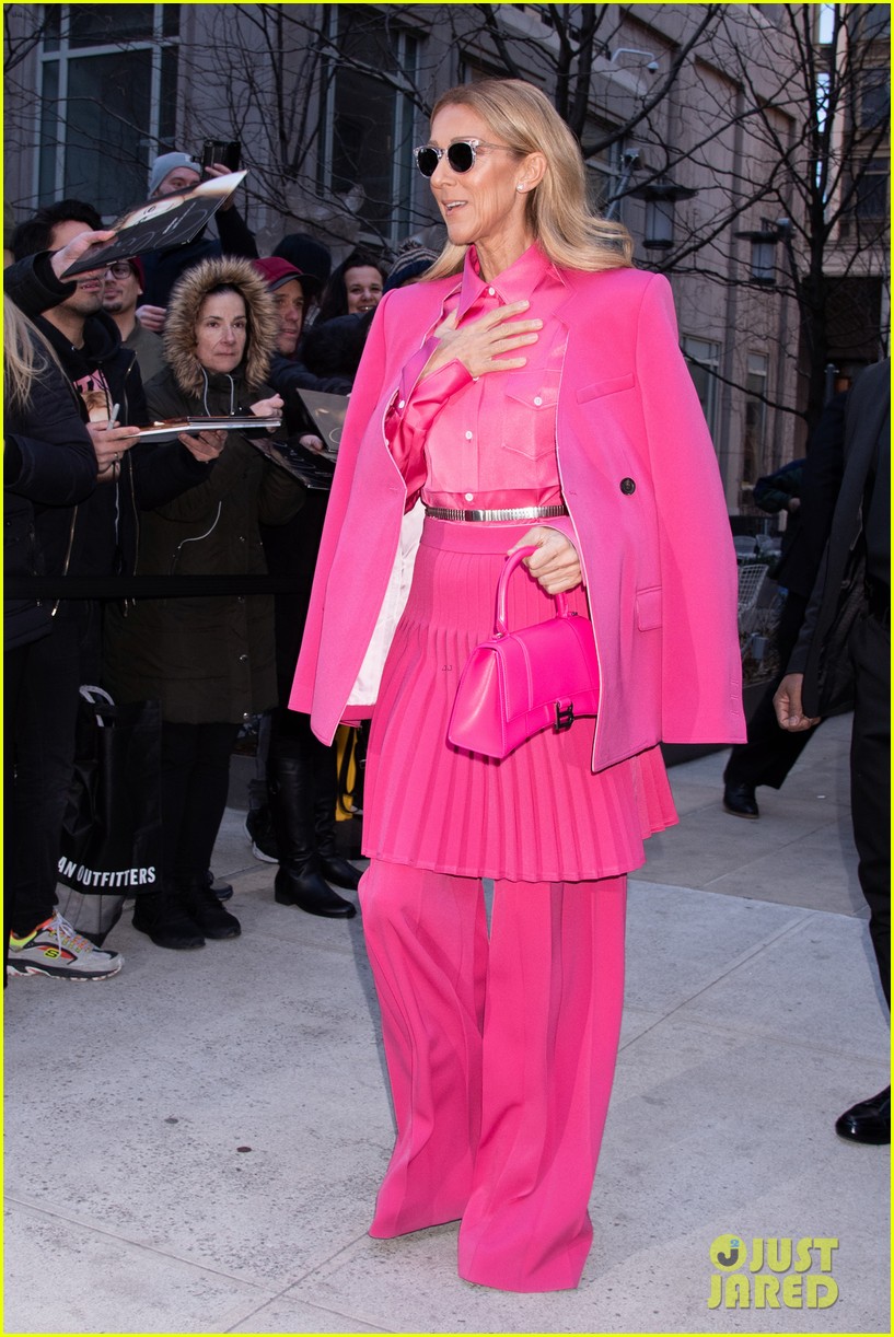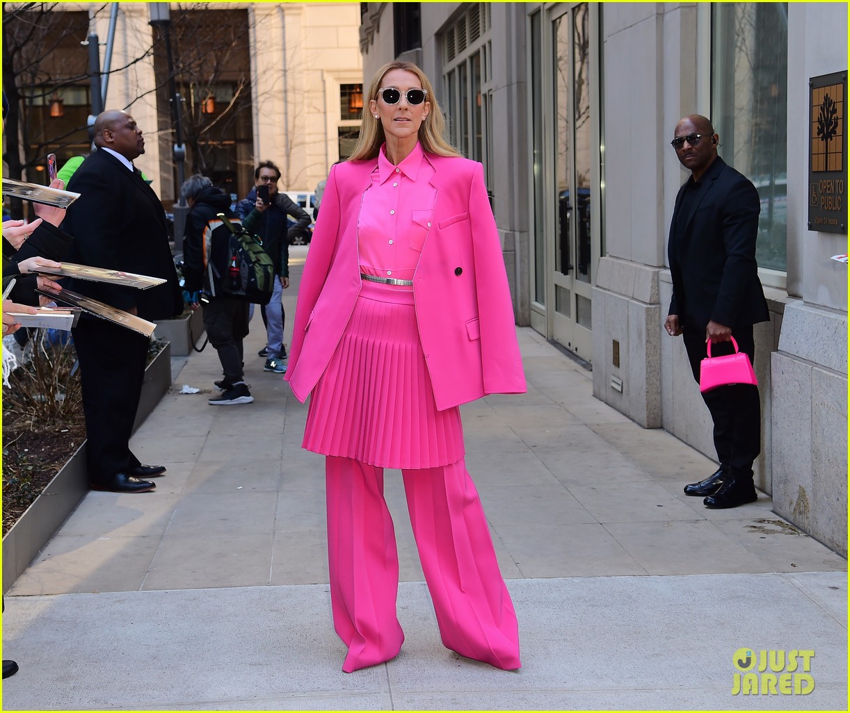 Celine Dion Wore A Skirt And Wide Legged Pants In A Bold Head To Toe Hot Pink Ensemble