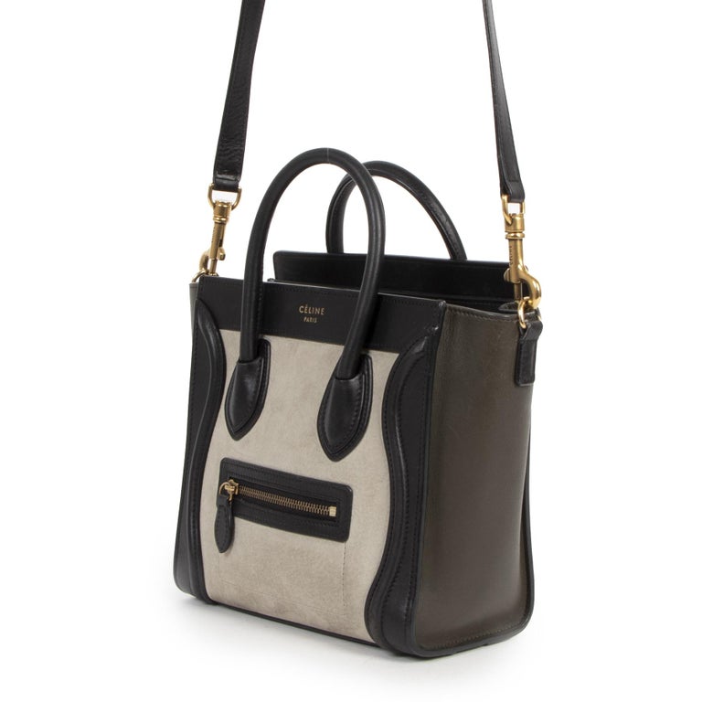 Celine Nano Luggage Shoulder Bag In Black Leather With Black Crocodile Celine Nano Luggage Bags Celine Luggage