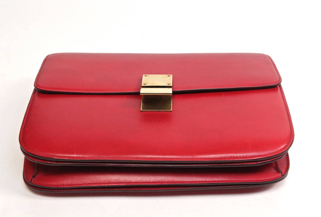 Celine Box Calfskin Medium Classic Box Flap Red 199651