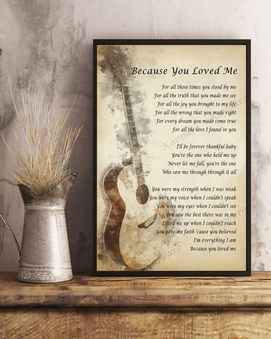 Amazon Com Kapparo Decor Gift Because You Loved Me Song Lyrics Portrait Poster Guitar Wall Art Print 16 X 24 Kitchen Dining