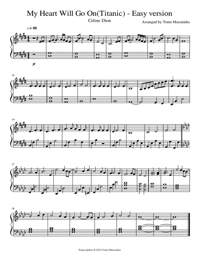 The Piano Keys My Heart Will Go On Easy Sheet Music Piano Solo In F Major Download Print Sku Mn0193758
