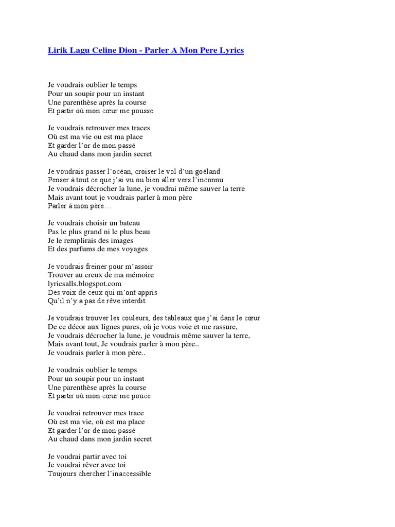 Celine Dion Parler A Mon Pere Lyrics مترجمة بالعربية Chords Chordify