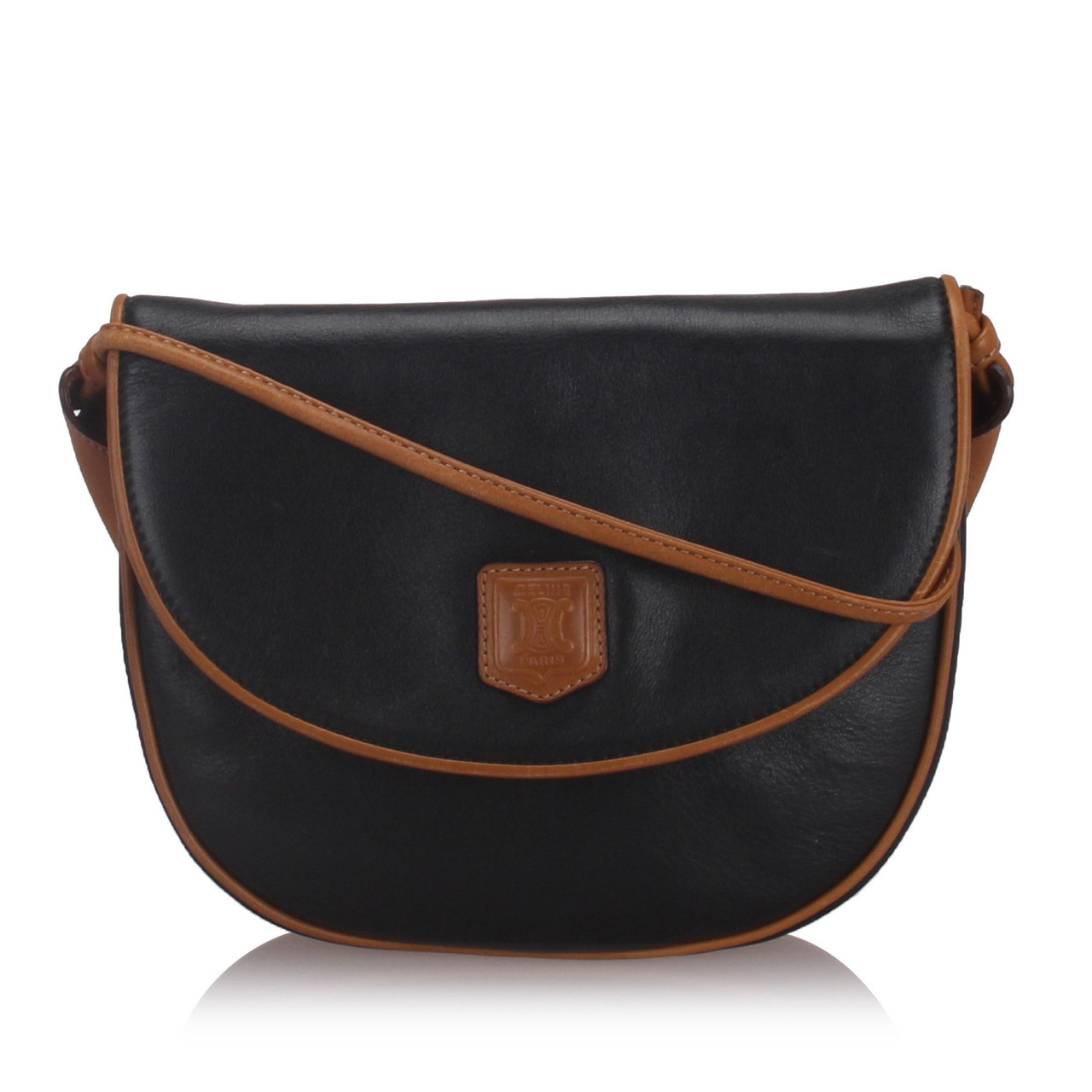 Pre Owned Vintage Celine Black With Brown Others Leather Crossbody Bag Italy Reebonz United States